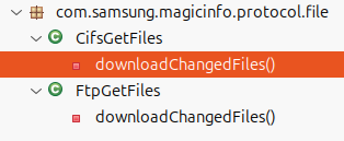 At [1] the code will get a list of all the files from the remote ftp server. For each file, the code will extract the file extension and call getCodeFile at [2]. Inside of the com.samsung.magicinfo.framework.content.manager.ContentInfoImpl class: